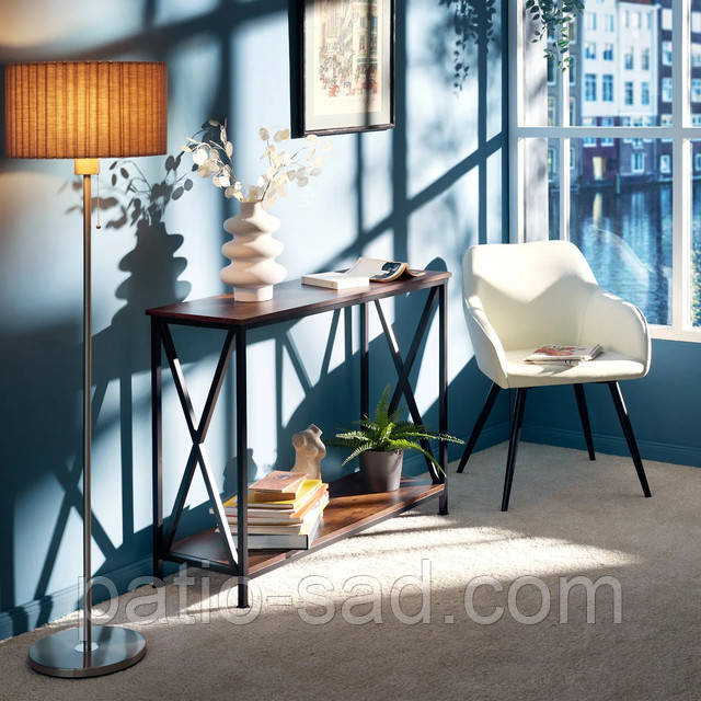 Тонкий консольний столик у популярному та модному індустріальному стилі з бічними перекладинами. Міцна МДФ із привабливим малюнком дерева.