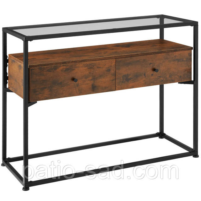 Стильний консольний столик зі скляною стільницею в модному індустріальному стилі.