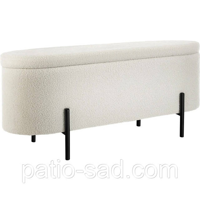Лавка у скандинавському стилі вражає своїм затишним дизайном. Ця м'яка лава з тканиною букле гармонійно впишеться в інтер'єр будь-якої кімнати та створить затишну атмосферу, будь то передпокій, вітальня чи спальня. Завдяки привабливому зовнішньому вигляду ви зможете зробити свій житловий простір не лише організованішим, а й стильним.