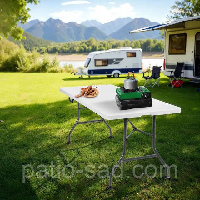 З цим розкладним столом ви будете повністю готові. Насолоджуйтесь відпочинком вдома, в саду чи на природі! Пластикова стільниця стійка до вологи та інших впливів довкілля. Складні столи легко скласти та прибрати, заощаджуючи місце. Протиковзні ніжки забезпечують надійну фіксацію практично на будь-якій поверхні і запобігають появі подряпин на підлозі. Сталева основа дуже міцна і довговічна. Стіл досить великий, щоб умістити всю родину. Одним словом: наш доладний стіл — ідеальний супутник вдома або в подорожі!